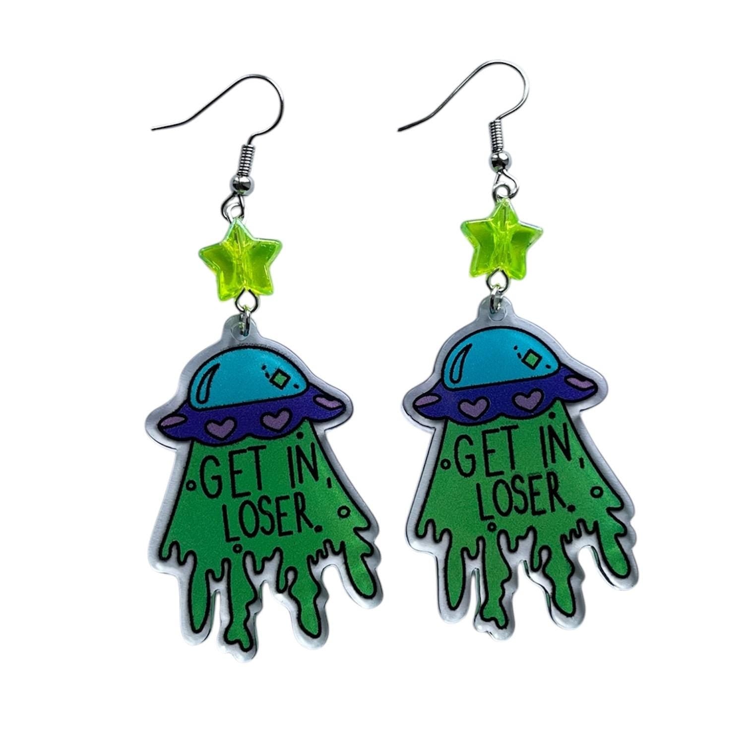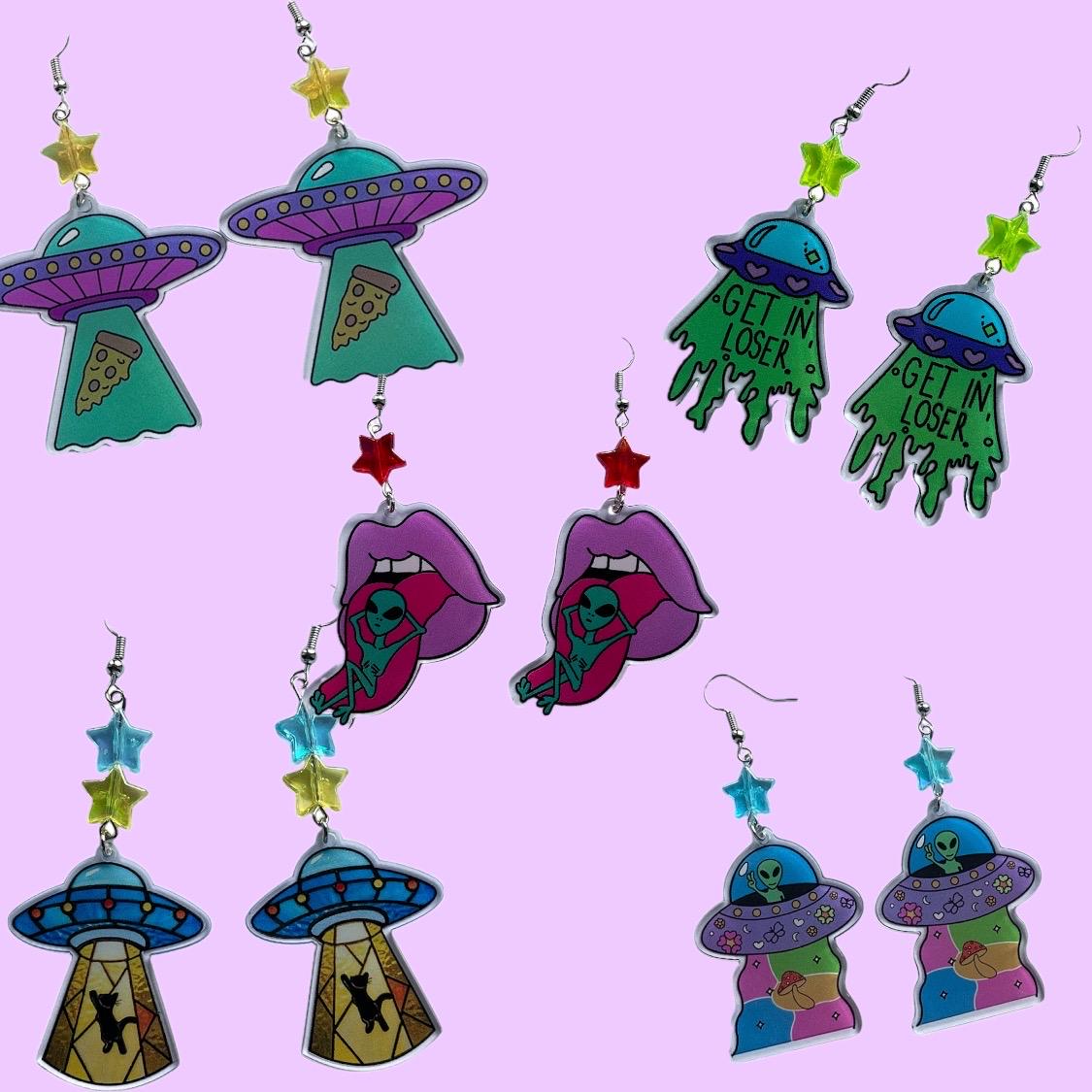 Cute quirky alien UFO earrings with stars