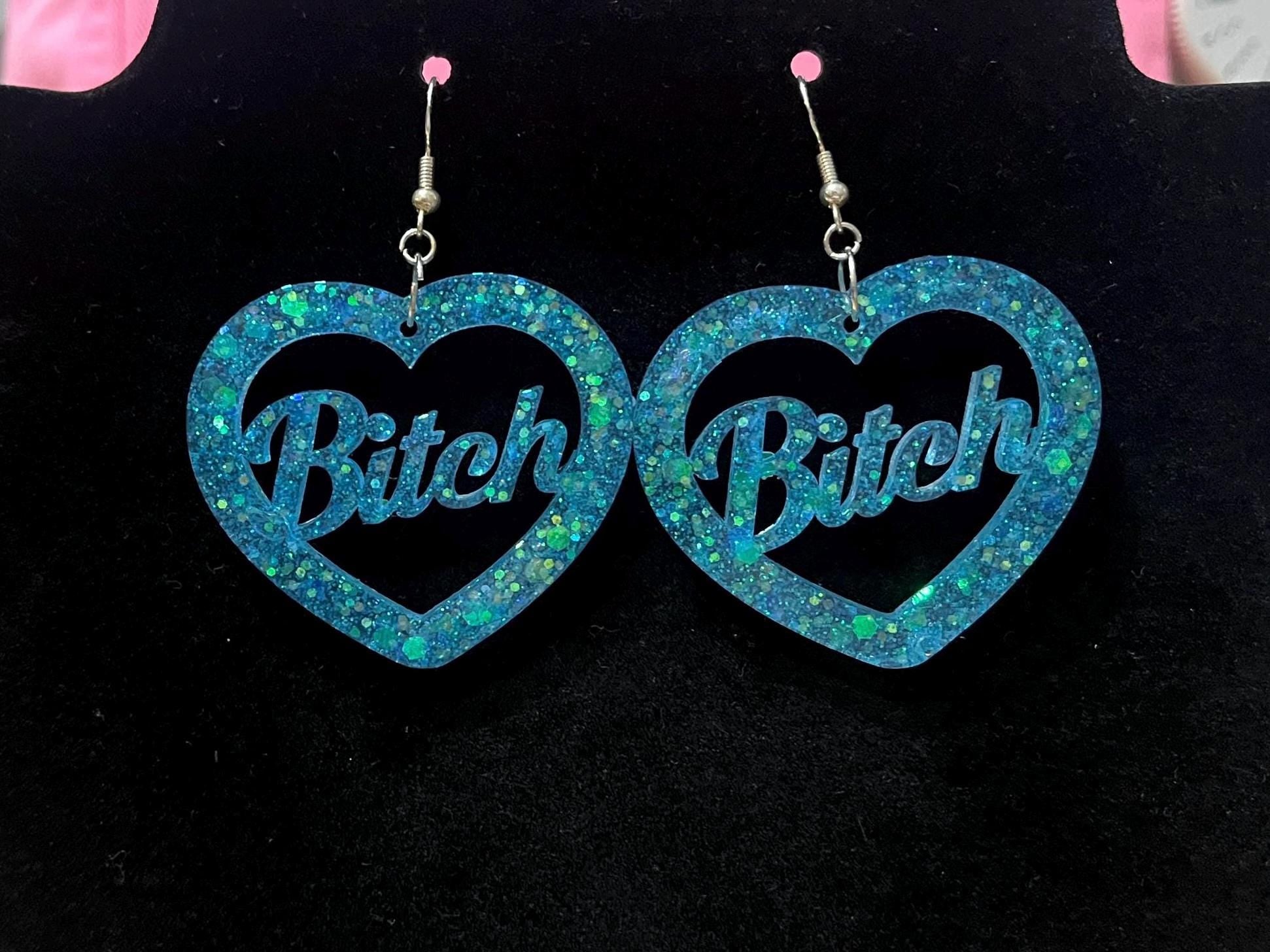 Handmade aqua blue glitter earrings with the option for clip on or dangle drop.