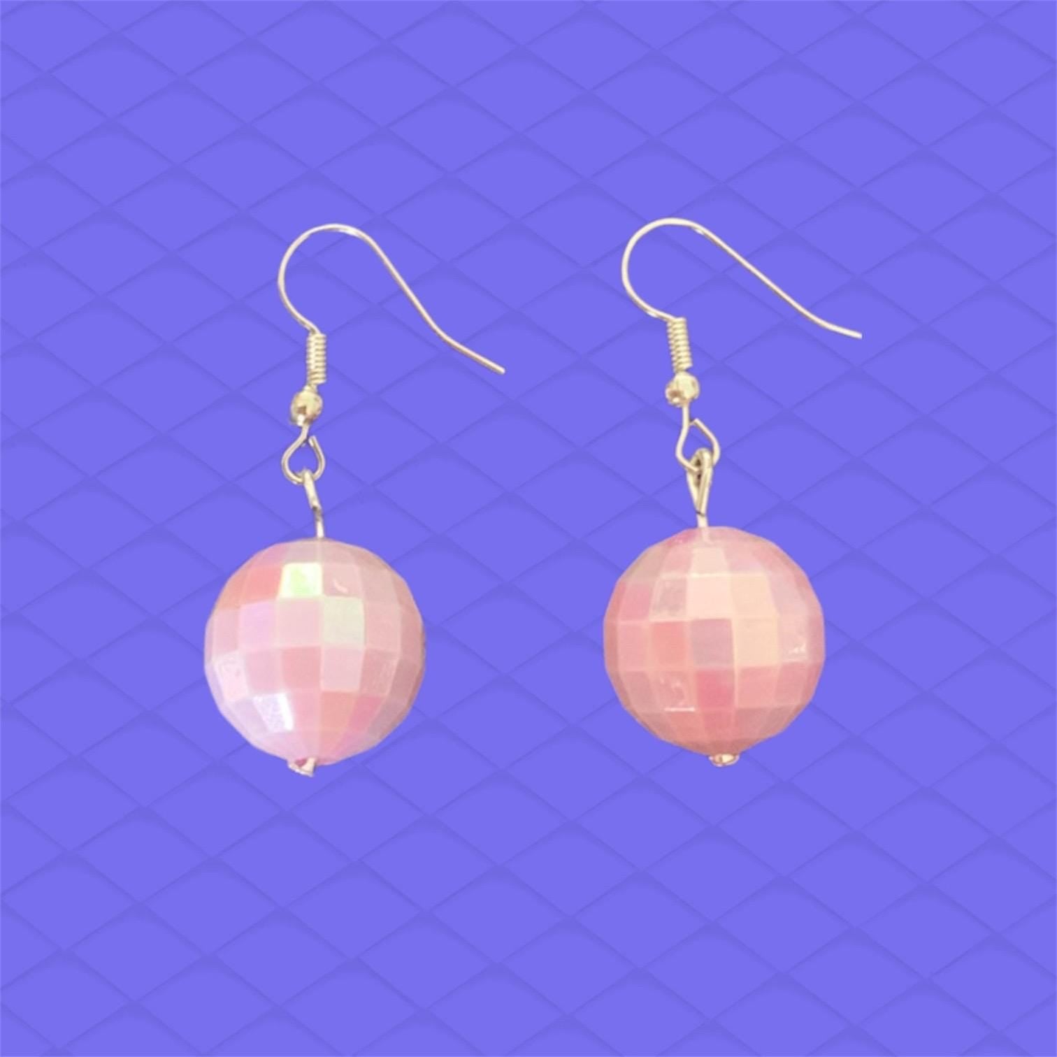 Goregeous spinning disco ball earrings with stainless steel hardware