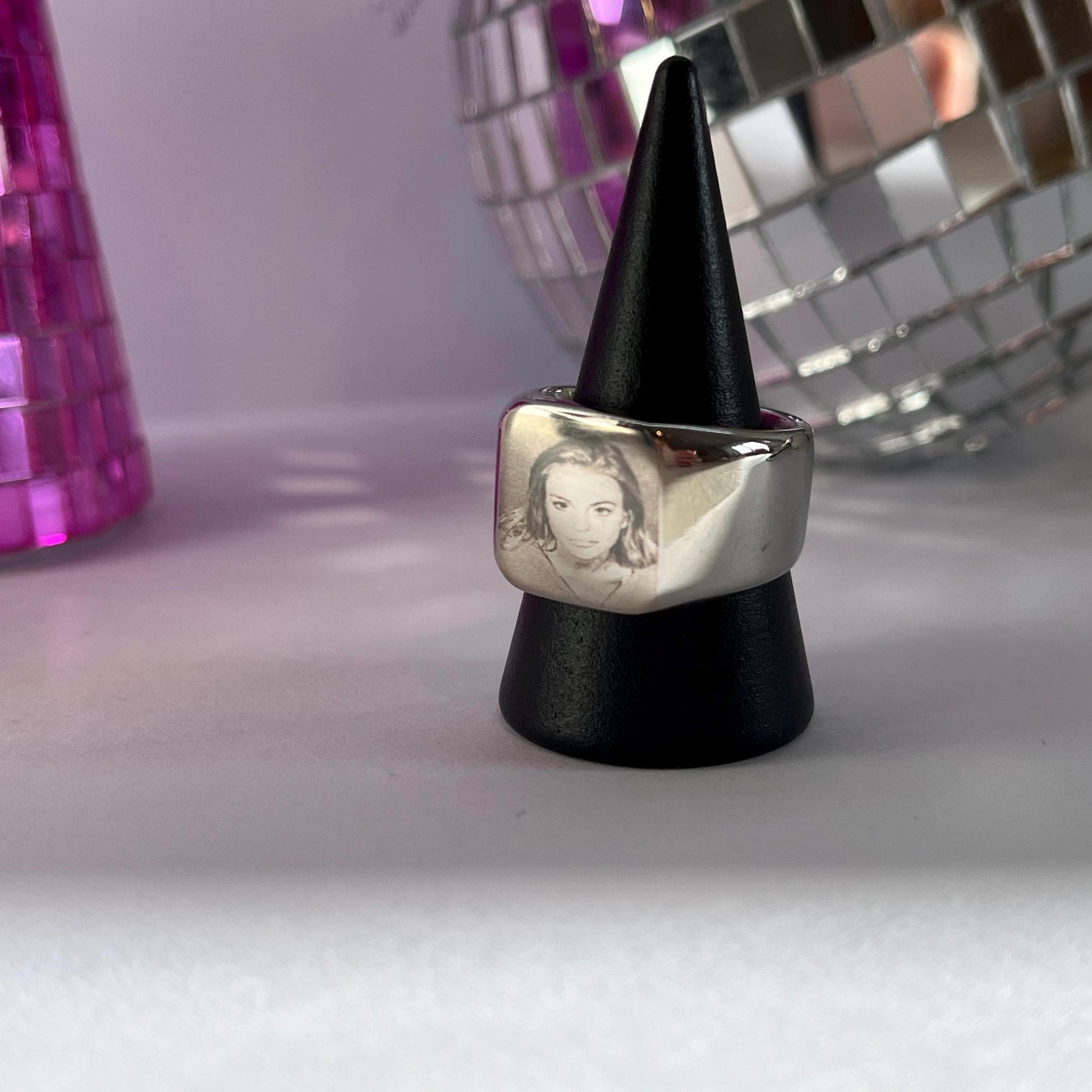 Iconic Lindsey Lohan signet ring in silver stainless steel