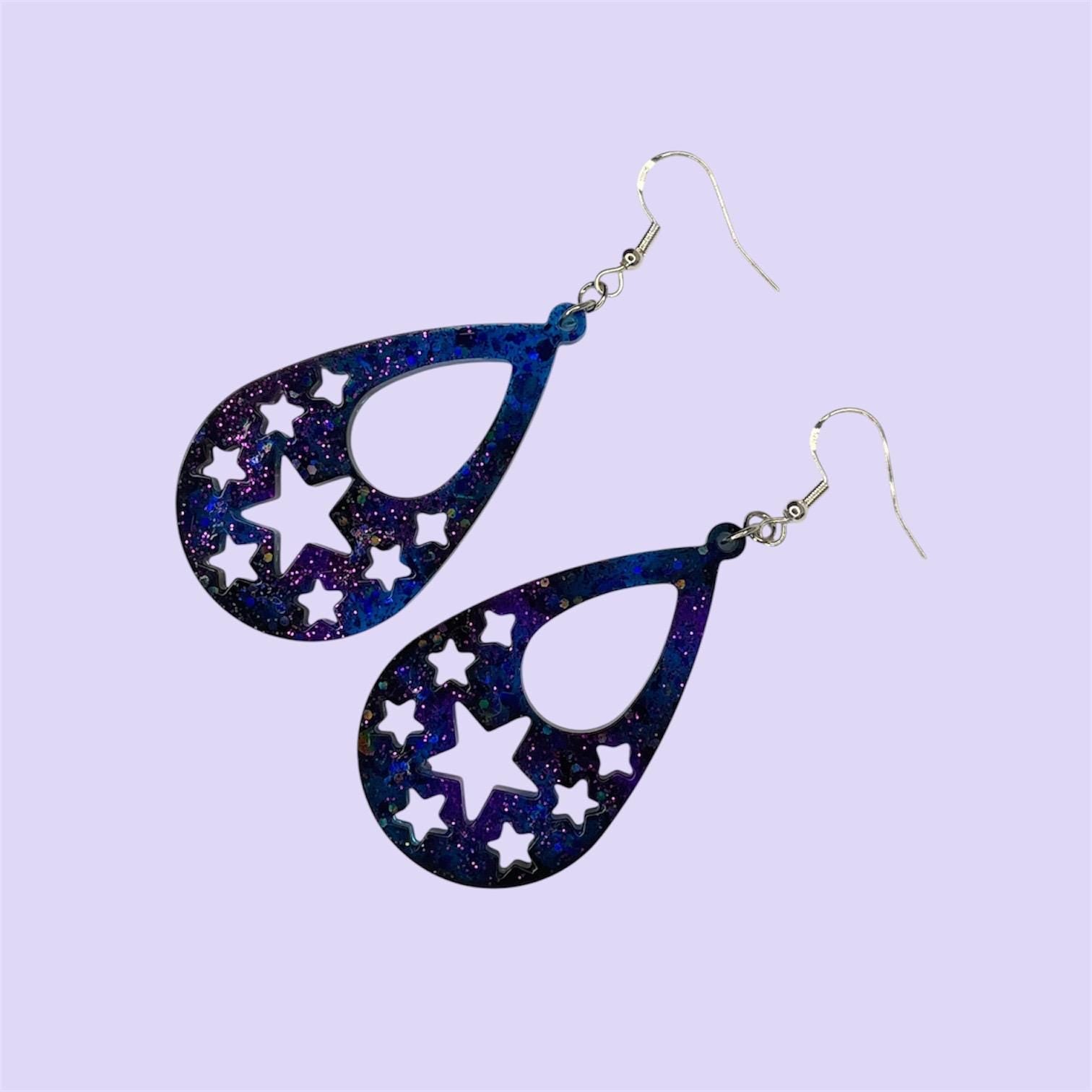 Gorgeous cosmic vibe moon witchy earrings, so much more glittery in real life!
