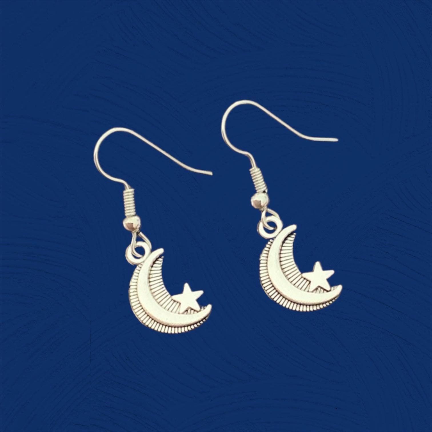 Mini moon and star dangle drop earrings