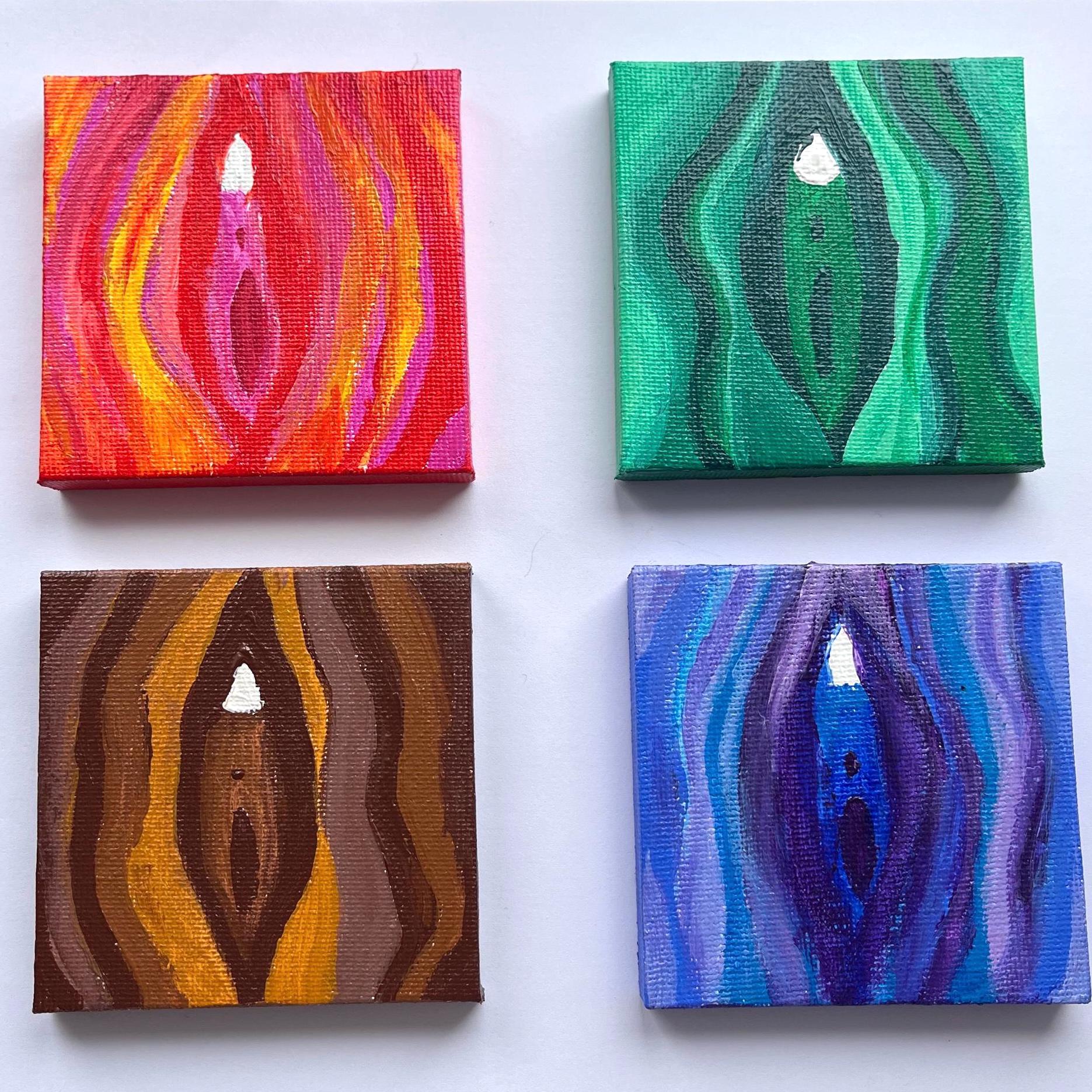 Hand painted miniature vulva paintings in acrylic on 7cmx7cm canvas